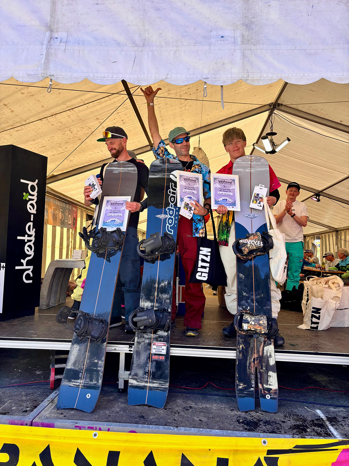 | 12:00 | Start Albonagrat (2408m) LBC Masters (Frauen, dann Männer) LBC Old School (Frauen, dann Männer) LBC No School (Frauen, dann Männer) LBC Family (alle zusammen) Ziel beim Eventzelt Stuben Dorf (1407m) |